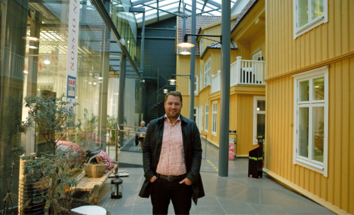 Lundbergs kontor på Smedjegatan ligger i en gammal byggnad, som har byggts ihop med den nya Passagen, som går från Södra Strandgatan till Smedjegatan. Jonas Petersson är ny ansvarig förvaltare för Lundbergs i Jönköping.