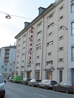 Fasaden är kulturminnesmärkt vilket gör att det inte har gått att göra några förändringar på utsidan. Ljusboxar med ett spännande mönster har satts in i entrén, som lyser upp på kvällarna.