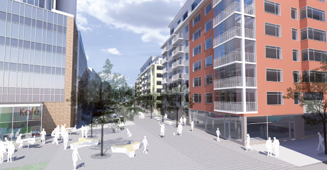 – Vi vill skapa en modern och tilltalande stadsdel, en attraktiv del av Solna som tilltalar en större publik. Visst kommer det säkert att flytta hit några AIK:are på grund av platsens historia, men absolut inte bara. Vid torget vill vi ha mindre butiker och kanske något bageri, som skapar liv i området.