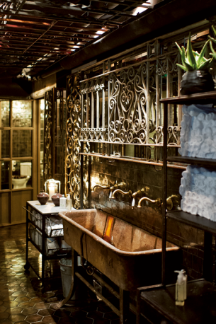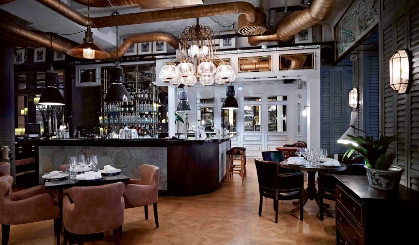 Inspirationen kommer från Barcelona. Det var Berns vd, Yvonne Sörensen Björud, som efter att ha besökt restaurang Boca Grande i den spanska staden insåg att hon ville öppna något liknande i Stockholm. Och bakom interiören står den spanske inredningsarkitekten Lázaro Rosa-Violán. Stilen känns tydligt igen från de andra restaurangerna Lázaro Rosa-Violán har inrett. Det är rustikt och rejält. Svarta industrilampor, mörk träpanel, konst på väggarna och prylar som samlats ihop under längre tid. På en av bardiskarna sitter gatsten från en gata i Barcelona. Samuel From pekar på en vägg täckt av uppställda vinflaskor.