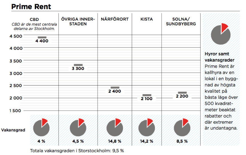 – Moderna fastigheter efterfrågas allt mer. Eftersom man vill effektivisera ytorna så är gamla kontor inte lika efterfrågade. Fler företag följer i spåren av de storföretag och banker som fattat beslut att lämna CBD för att lokalisera sig utanför stadskärnan. Detta märks på sjunkande vakansgrader i Solna/Sundbyberg, Kista och Närförort, parallellt med något stigande vakansgrader i CBD och övriga innerstaden, även då vakansgraderna i innerstaden fortfarande är historiskt låga.