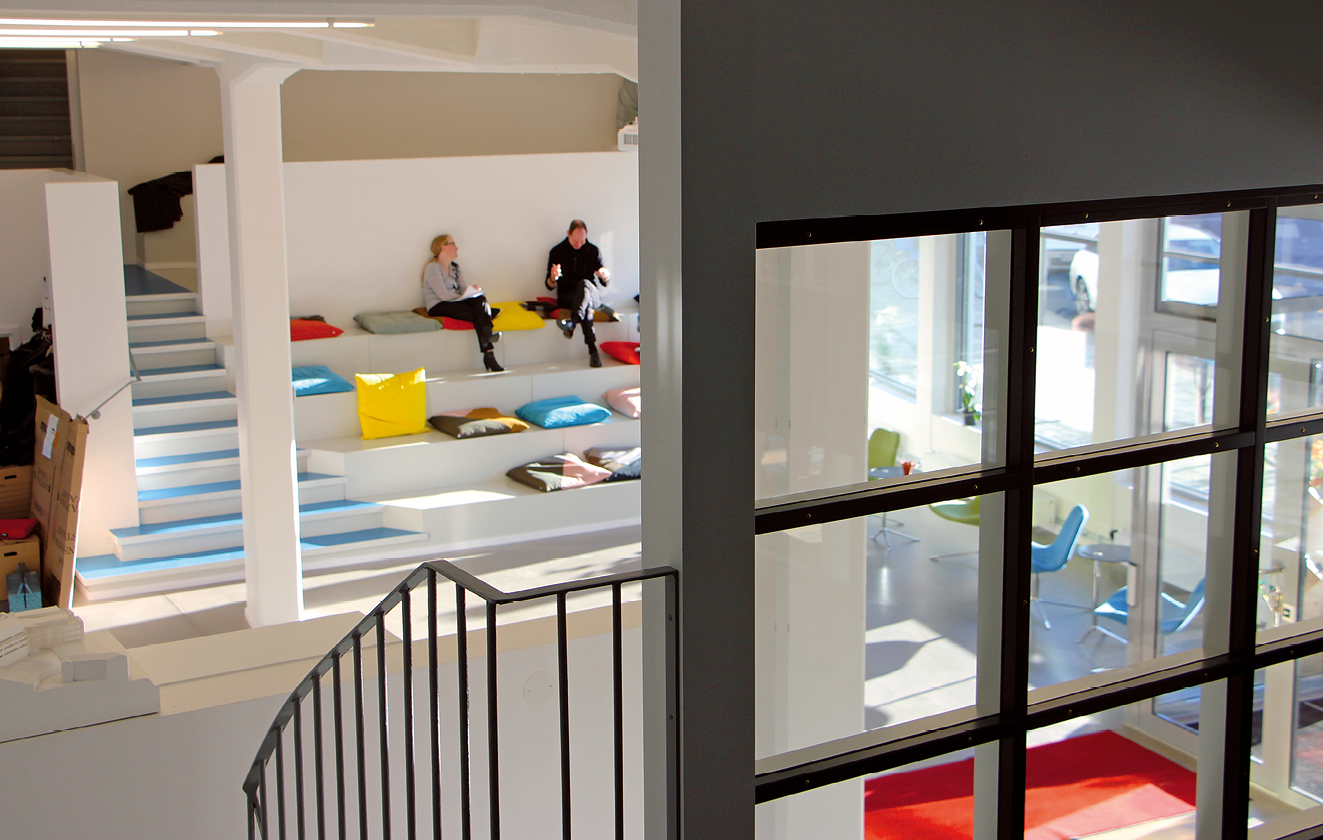 Lokalerna består av en aktivitetsbaserad våning, en mer traditionell kontorsvåning, och det som Per-Henrik Johansson kallar för bonusytan: på entréplanet med dubbel takhöjd har de öppna ytor, bibliotek och konferensrum.