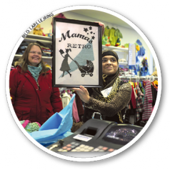 Mamas Retro är en secondhandbutik med barnkläder, mammakläder och leksaker.