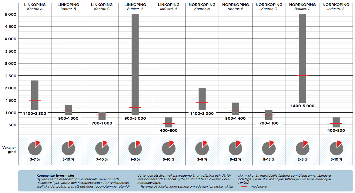 Efterfrågan på lokaler är i dag starkare än den varit under 30 år. Givetvis är Linköping och Norrköping de orter som har högst efterfrågan. Tillgång på alternativ och arbetskraft samt kommunikationer bidrar till detta. Urbaniseringen kommer att fortsätta. Undantag är säkert mindre orter som har enskilt starka industrier, såsom Finspång. Där bygger efterfrågan dock helt och hållet på utvecklingen i de stora bolag som verkar på orten.
