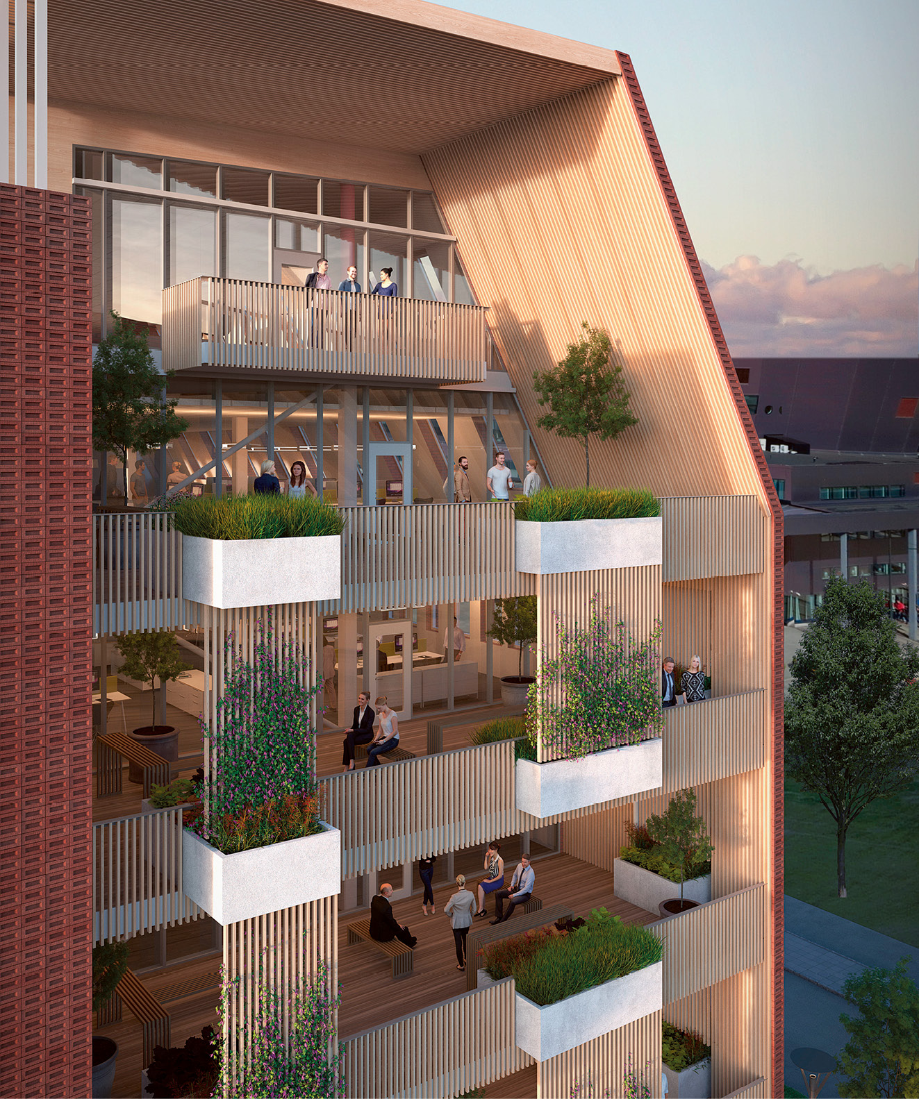 – Terrasserna har vi satsat väldigt mycket på. I stort sett varje arbetsplats får tillgång till en stor grön oas med utsikt, frisk luft och möjlighet till miljöombyte som ger ny inspiration, berättar John-Olof Sundström.