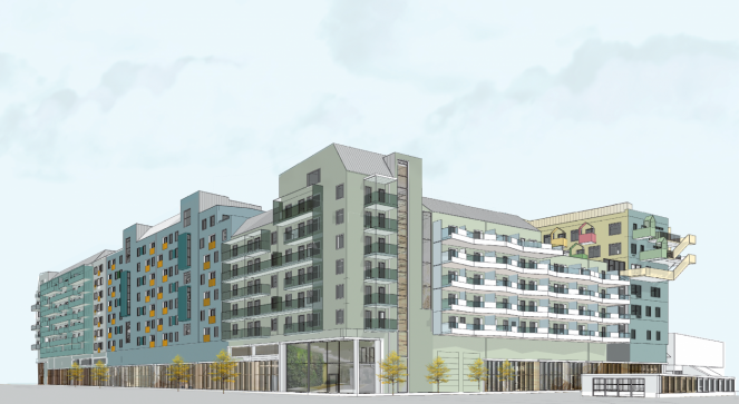 I det första kvarteret som Peab uppför skapas en blandning av bostäder och handel.