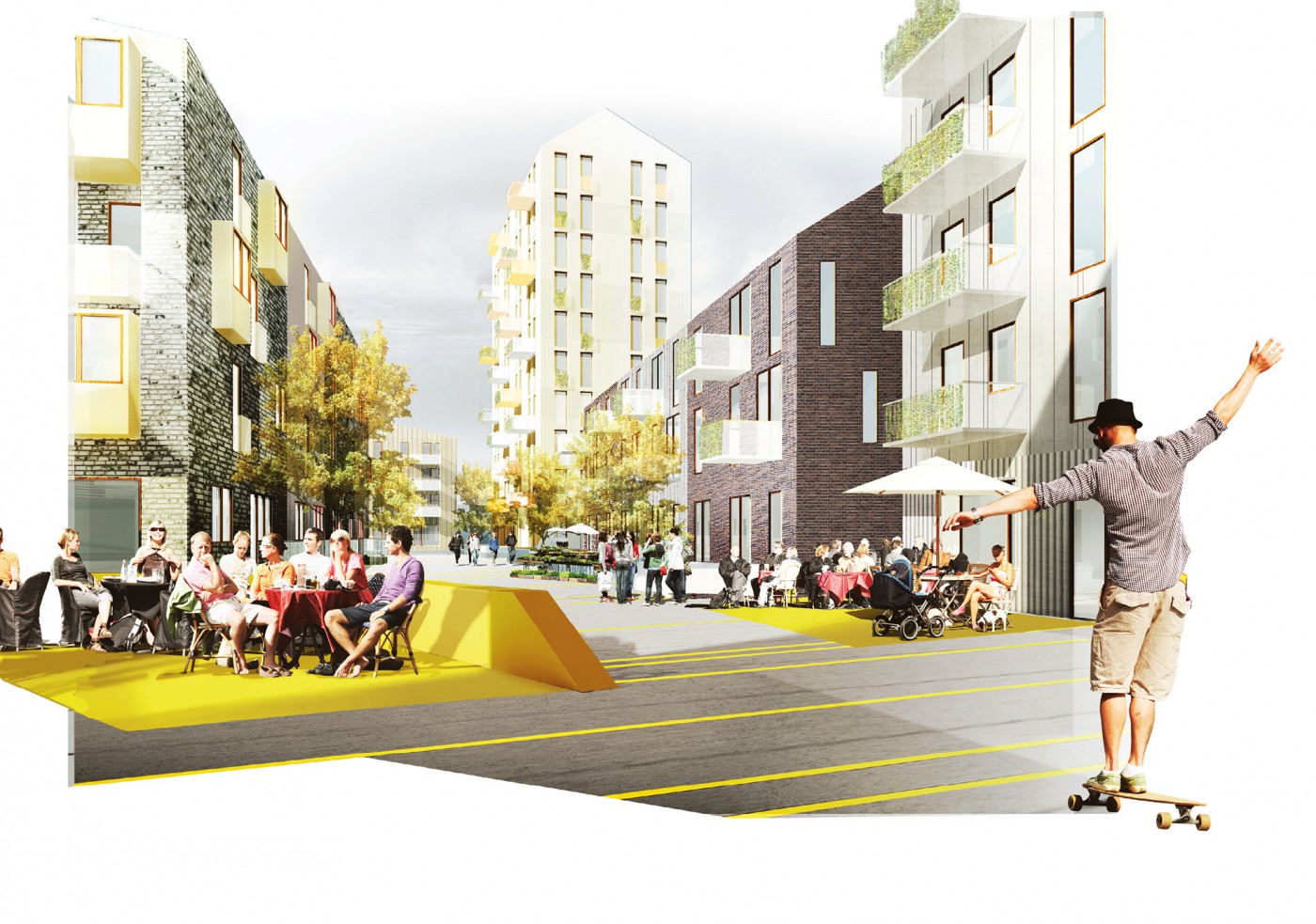 Viktigt i gestaltningsprocessen är att skapa en sammanhållen stadsdel där de olika delarna harmonierar med varandra.
