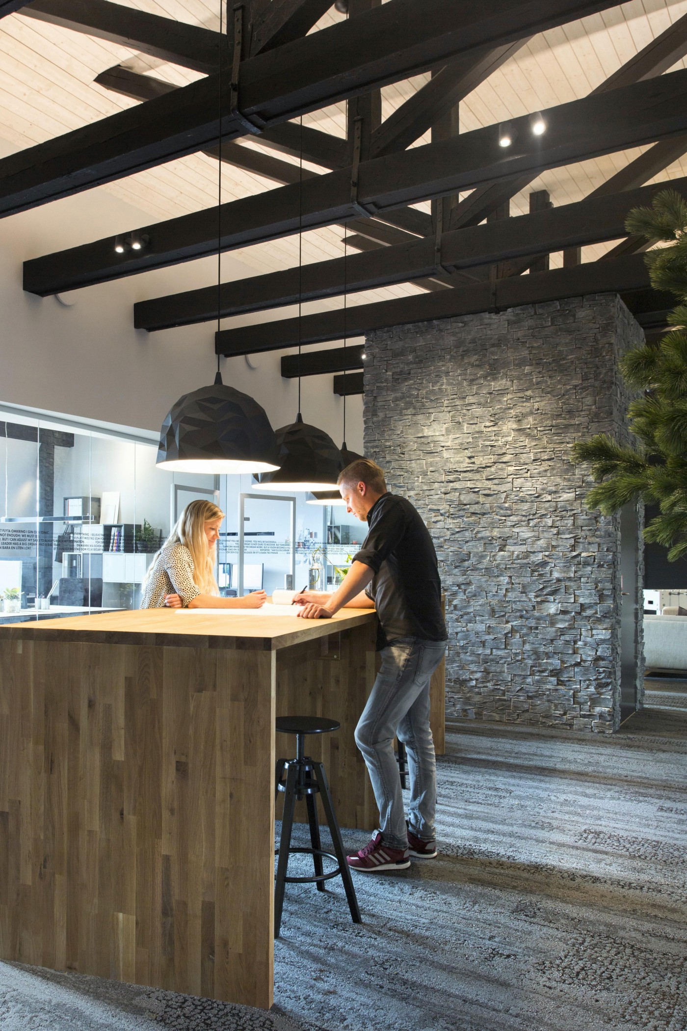 "Wow!" Det är jätteroligt att ta emot gäster och kunder och få visa upp kontoret för dem. De flesta besökarna tappar hakan när de passerat igenom de mysteriösa tunnlarna och stiger in i vårt öppna vardagsrum för första gången. Ofta får vi höra att vårt kontor upplevs som en kombination av en hotellounge, ett vardagsrum, en lodgestuga och ett kontor. Atmosfären, helheten, sammansättningarna av materialvalen och framför allt den hemtrevliga känslan är ofta det som nämns. De besökare som tidigare har sett bilder på kontoret reagerar ofta på att det är en helt annan känsla att befinna sig på plats. De menar att kontoret helt enkelt måste få upplevas i verkligheten.