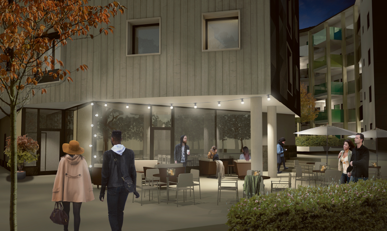 I bottenplan finns möjlighet till kommersiell verksamhet. Mot parken ser Lindstén Fastigheter gärna någon typ av café eller restaurang.