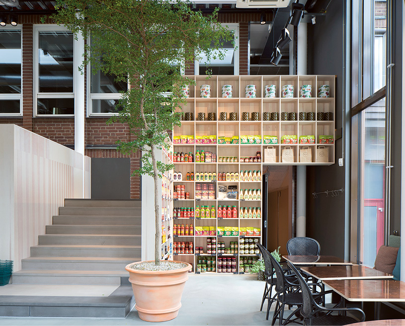Det första man möter i Orkla Foods Sveriges huvudkontor är deras butik och café. En våning upp finns receptionen och externa mötesytor. Resten har man valt att dela upp i olika zoner.