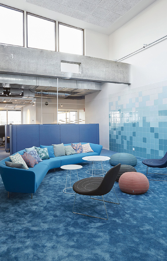– Eftersom vi arbetar 250 personer här med olika typer av arbetsuppgifter valde vi att dela in ytorna i olika zoner. Zonerna är namngivna efter de fyra elementen och är utformade efter olika aktiviteter och personligheter, säger Camilla Benckert.