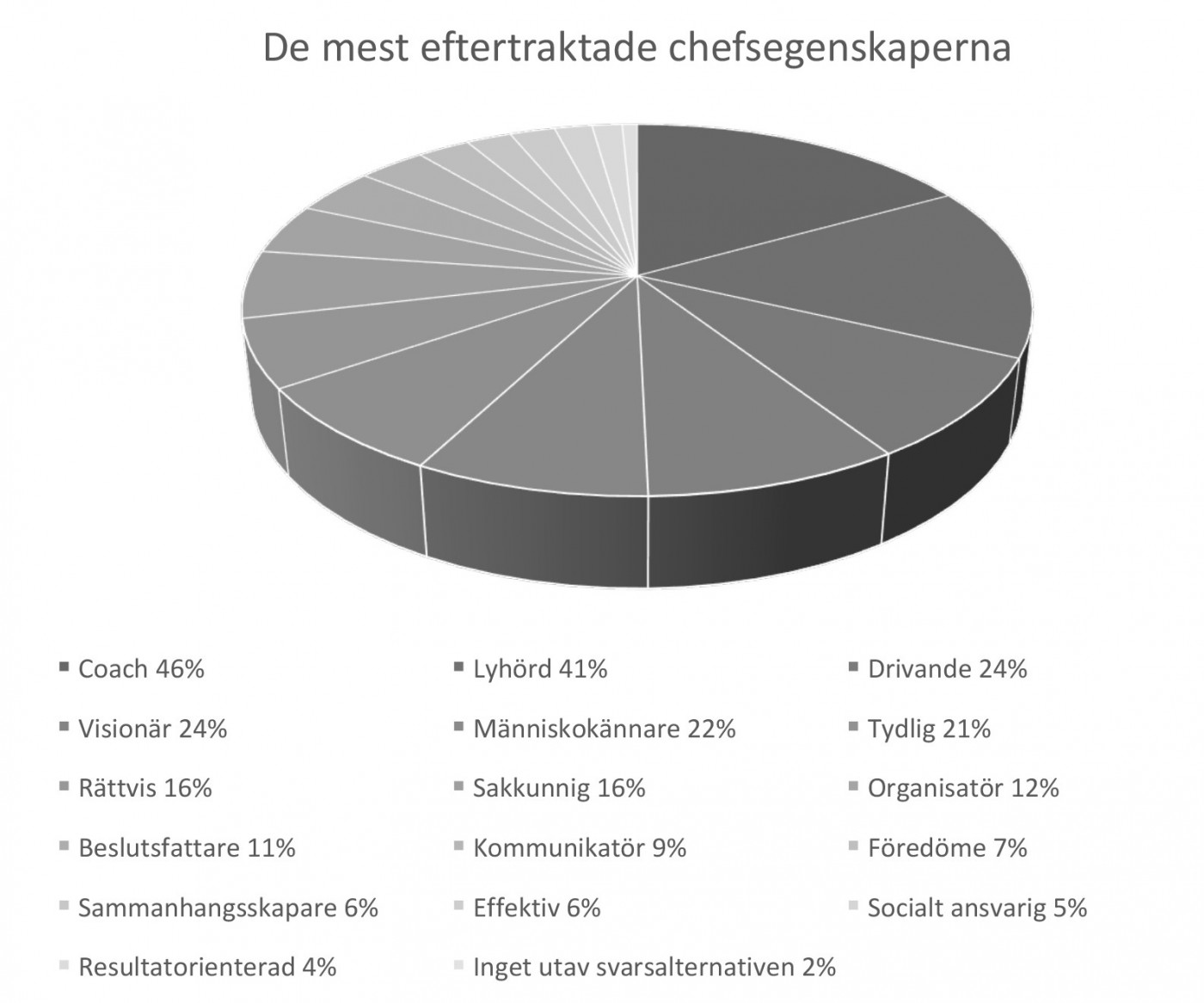 I en undersökning från 2016 har Manpower frågat svenskarna vilka egenskaper de värdesätter hos sina chefer. Resultaten visar med stor marginal att de tillfrågade föredrar en chef som är coachande och lyhörd. De som själva sitter i chefspositioner tycker att visionen är viktig, samtidigt som de yngre personerna i undersökningen föredrar en drivande chef.