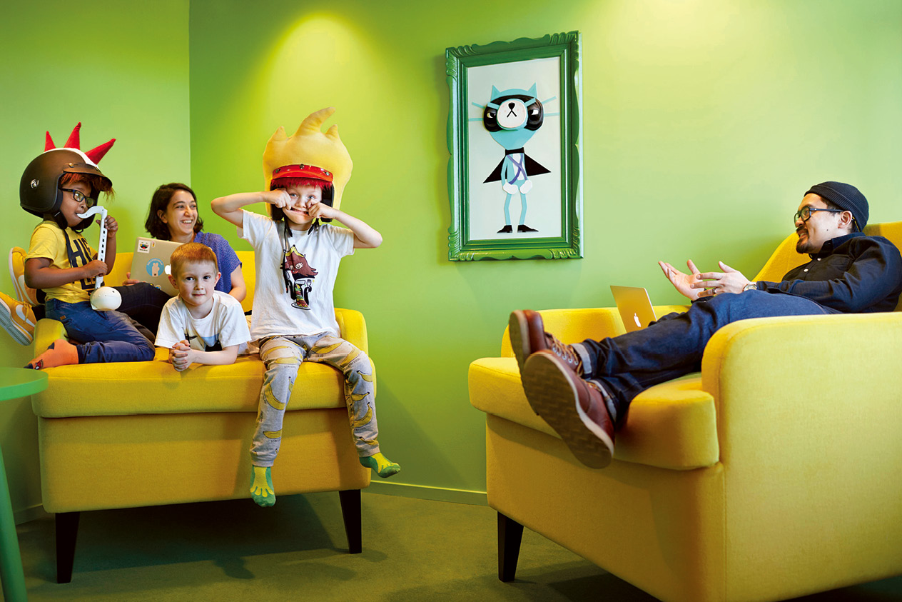 – Det hela är tänkt att bidra till vår kreativitet och lekfullhet. I ett rum är exempelvis allting förstorat så man får liksom klättra upp i möblerna. Där brukar jag ha mina möten, det gör någonting med den man möter och sätter tonen på ett bra sätt!