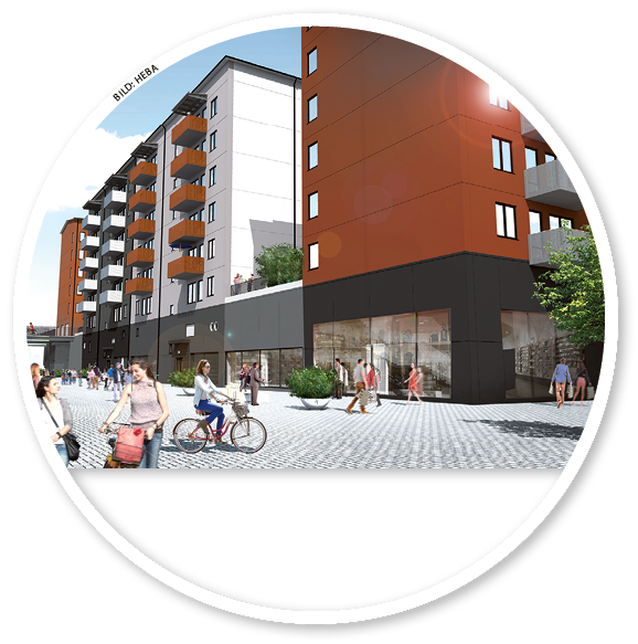 Hebas fastighet omfattar 184 lägenheter, 1 650 kvadratmeter lokaler och 85 garageplatser. Skanska bygger och Heba tillträder fastigheten till sommaren 2017 då kvarteret färdigställs. Flemingsbergsdalen genomgår en kraftig utbyggnad och en helt ny stadsdel växer nu fram med handel, hotell, sporthall, kontor och bostäder.