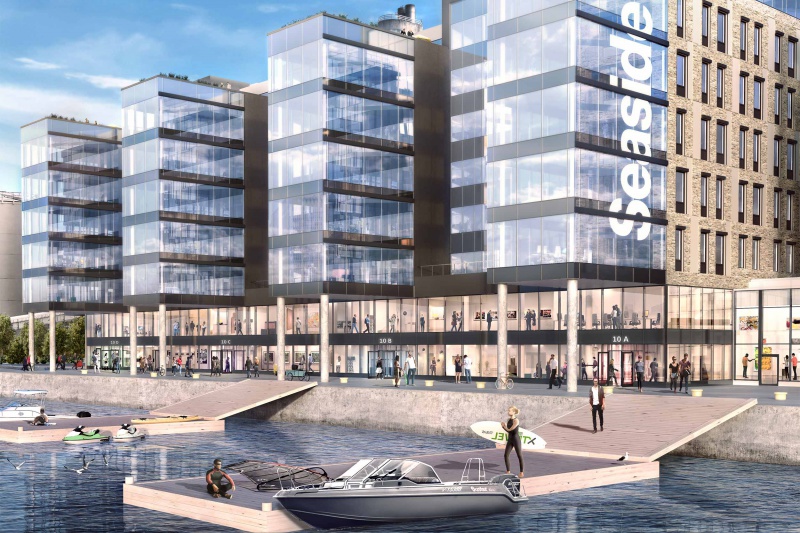 Stockholm 03 kommer att stå klar hösten 2016 och några månader senare även Stockholm Seaside - en kontorsfastighet vid vattenbrynet med uthyrningsbara ytor om 14 000 kvadratmeter och med våningsplan om 2 500 kvadratmeter. Dessa kommer att kunna delas av såväl vertikalt som horisontellt. Läget vid vattnet gör det möjligt att paddla kajak eller surfa till jobbet.