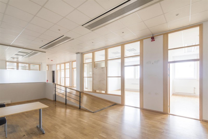 På tre av våningsplanen finns det både produktionsytor och kontorslokaler, både rum och öppna landskap.