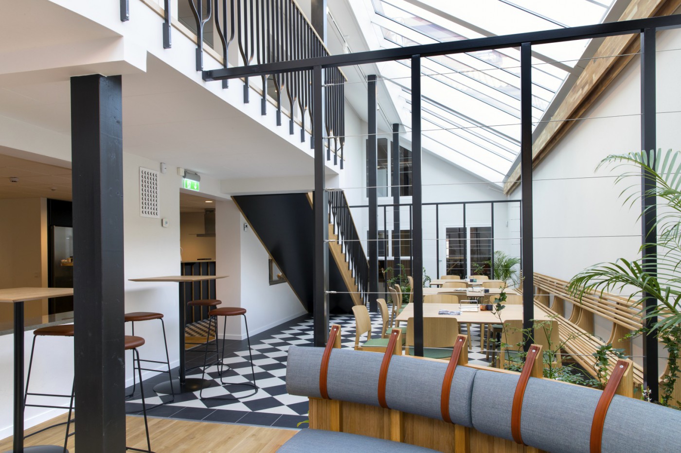 Whao – vad fint det är! Istället för att bygga vidare på befintlig struktur tog vi ett nytt grepp som innebar att vi skapade en ny vinterträdgård över bilplatser och valv mitt i huset. Denna ljusa vinterträdgård med växtväggar och plats för konst är kärnan i kontoret. Den utstrålar ljus, hälsa, sundhet, skönhet och inspirerar till kreativitet för såväl personal som för kunder. En image för företaget. Huvudkommunikationen är förlagd hit för att rörelsen i huset skall bli något mer än en transport. Vinterträdgården har ett rikt innehåll med mötesplatser, lounge, sociala ytor och personalrum. Denna miljön används till bland annat kundevent, personalevent, möten och alternativ arbetsplats för att få variation och ny miljö.