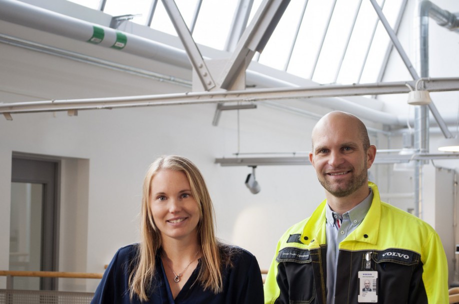 Linda Ålander, arkitekt på PE Arkitektur och Johan Elgh fastighetschef vid AB Volvos produktionsanläggning i Skövde.