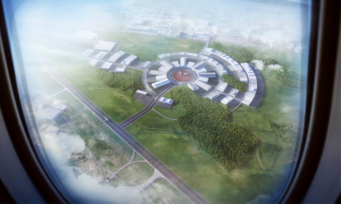 Inspirationsbild över området där Sankt Kors vill blanda verksamheter och utbildningar som är kopplade till flygnäringen.
