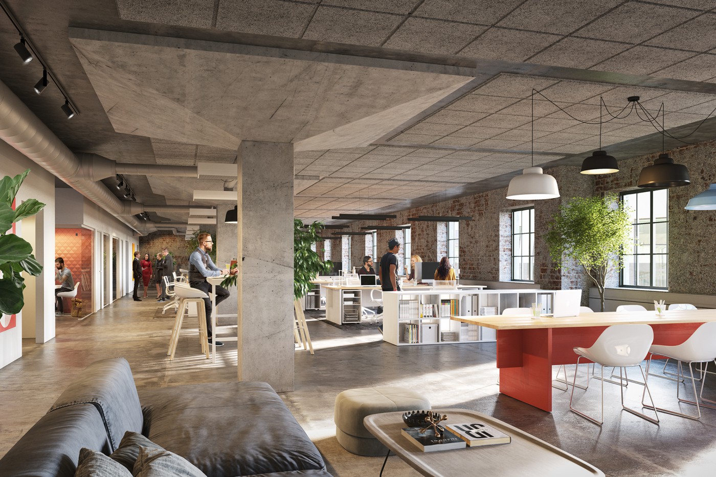 – Våningsplanen är 1 300 kvadratmeter. Även här blir det karaktärsstarka kontor med mycket industrifeeling. Lokalerna består faktiskt av tre ihopbyggda huskroppar. Man ser att pelarna i de olika ändarna av våningsplanen ser helt olika ut.