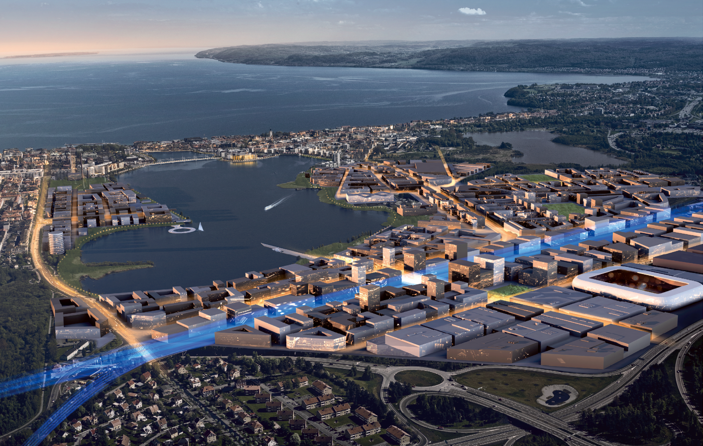 Jönköping växer, och här syns höghastighetsjärnvägens planerade passage genom det nya området vid Södra Munksjön.