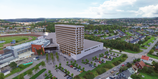 Det första steget i den gemensamma planeringen var en mässhall om 10 000 kvadratmeter – nu har både den och hela projektet vuxit. Numera ingår även ett hotell i 14 våningar, som kommer att drivas av familjeföretaget HKC Hotels. Dessutom har det tillkommit två våningar med kontor, dels kontorsytor för mässhallen och dels kontorsyta om 1 500 kvadratmeter som blir tillgänglig för en aktör utifrån. Utöver det kommer Friskis & Svettis att flytta in.