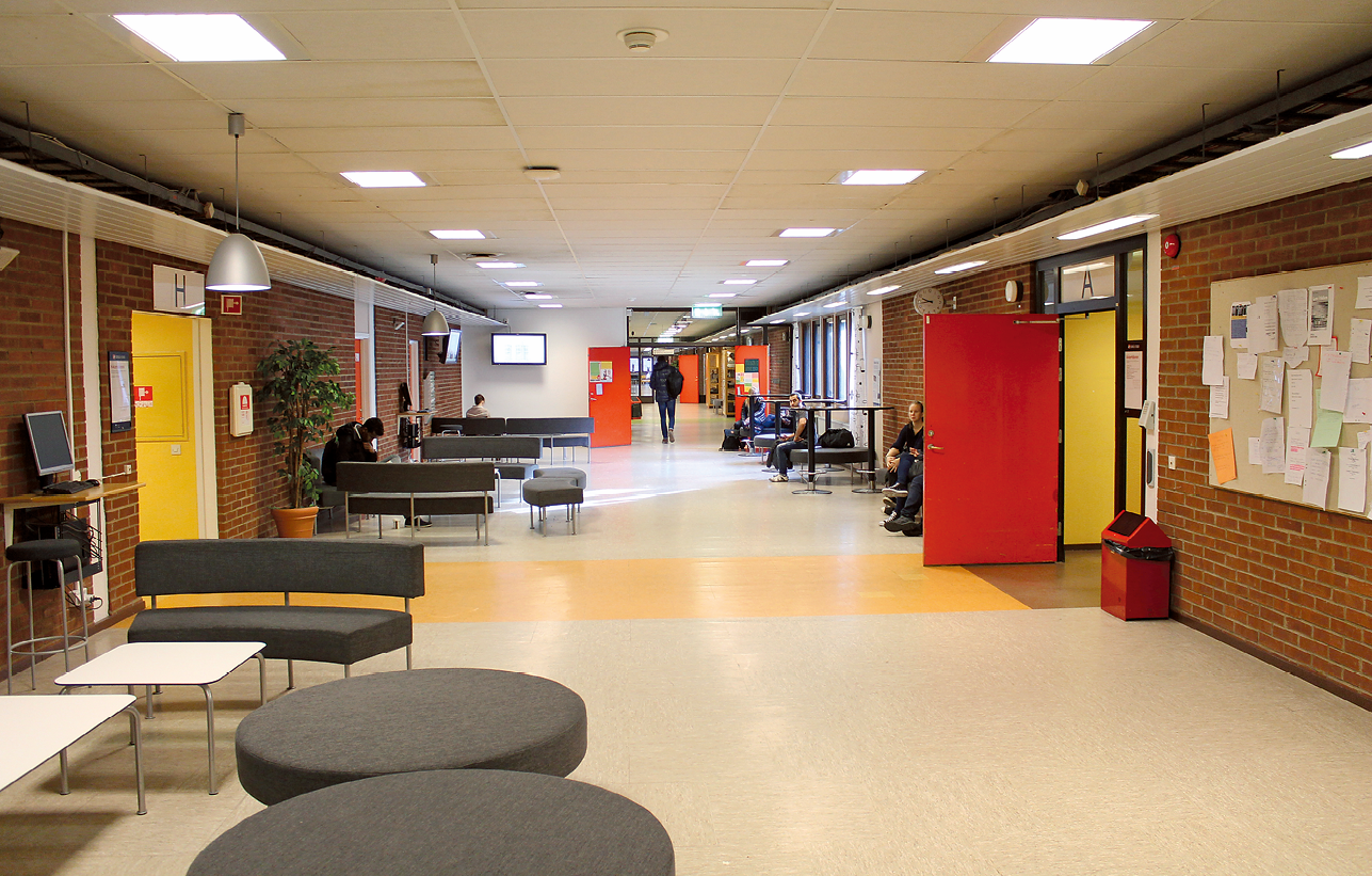 Före detta vårdskolan delas av en stor korridor varifrån ett flertal olika skepp löper. Husets utformning gör att det lätt kan delas upp för olika verksamheter.