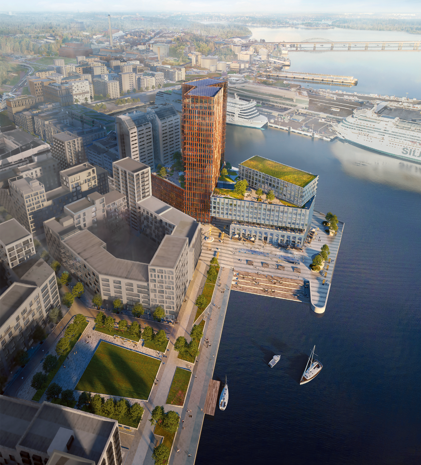 Bonnier Fastigheter har tre markanvisningar i området, där det största blir ett kontorshus om cirka 50 000 kvadratmeter fördelat på 24 våningar. Huset, som fått namnet Pirhuset, ligger delvis ut på själva piren och kommer enligt Sara Olsson att bli ett nytt landmärke i Stockholm. De kommande två husen som planeras omfattar 15 000 respektive 6 000 kvadratmeter. Första inflyttning siktar man på 2022.