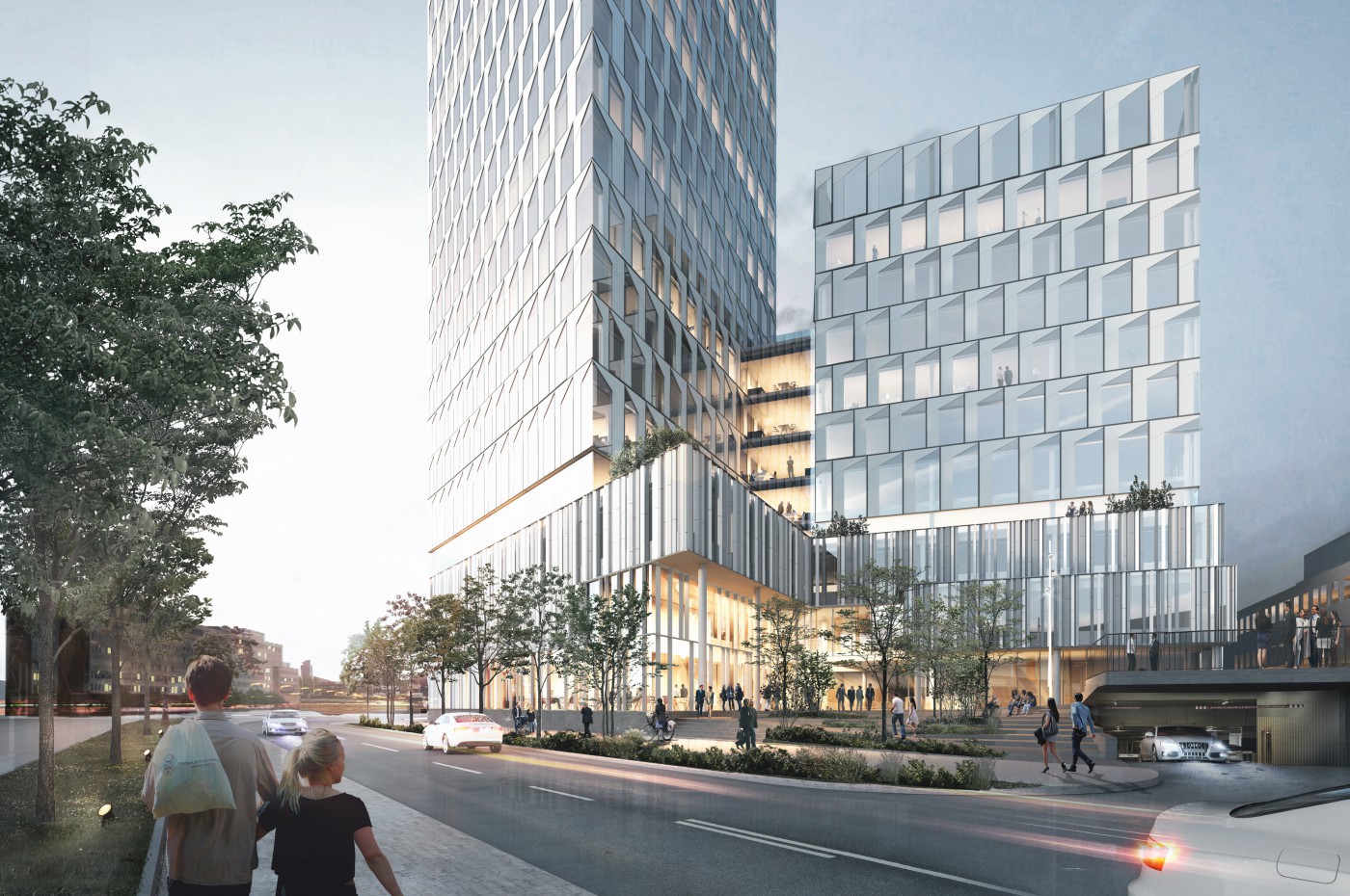 I botten blir det flera plan med stora kontorsvåningar som omfattar 2 600 kvadratmeter – en storlek som inte ofta erbjuds. Resterande plan upp i höghusdelen blir på 800 kvadratmeter.