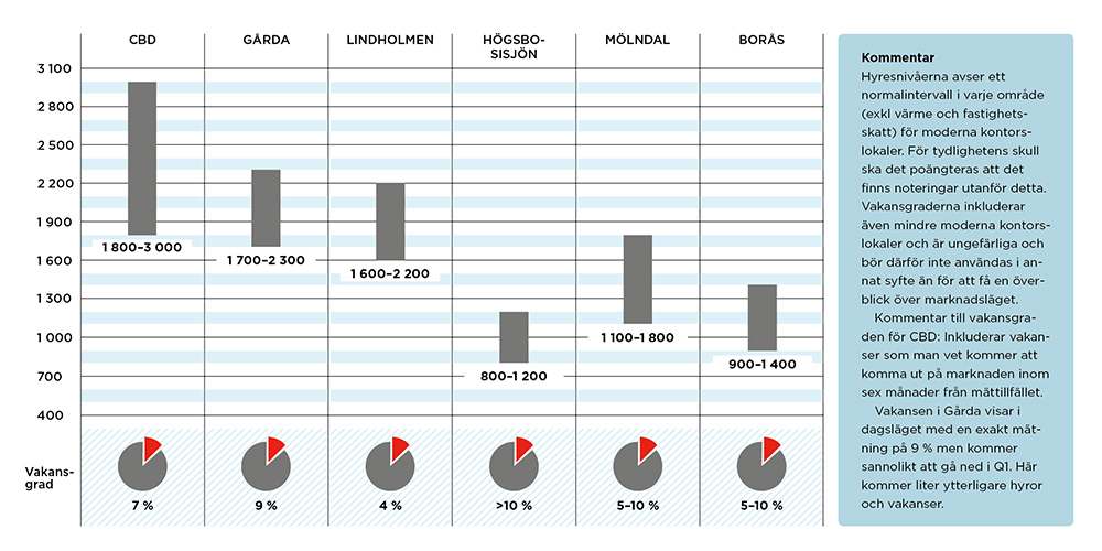 – Vi har sett en uppgång på fem–tio procent under det senaste 1,5 åren och än så länge har vi inte sett några tecken på att denna utveckling ska stanna av. Låga vakanser och få nybyggnationer är bidragande faktorer. Flera stora kontorsprojekt är planerade i Göteborg vilket är svårt att förutse effekterna av, men jag tror att det är enbart positivt. Stora infrastrukturprojekt är också igång eller planerade de kommande åren och fastighetsägarna har hitintills visat sig kunna arbeta proaktivt för att undvika de eventuella negativa konsekvenser som detta kan komma att innebära och istället drar de nytta av de positiva följder det medför.