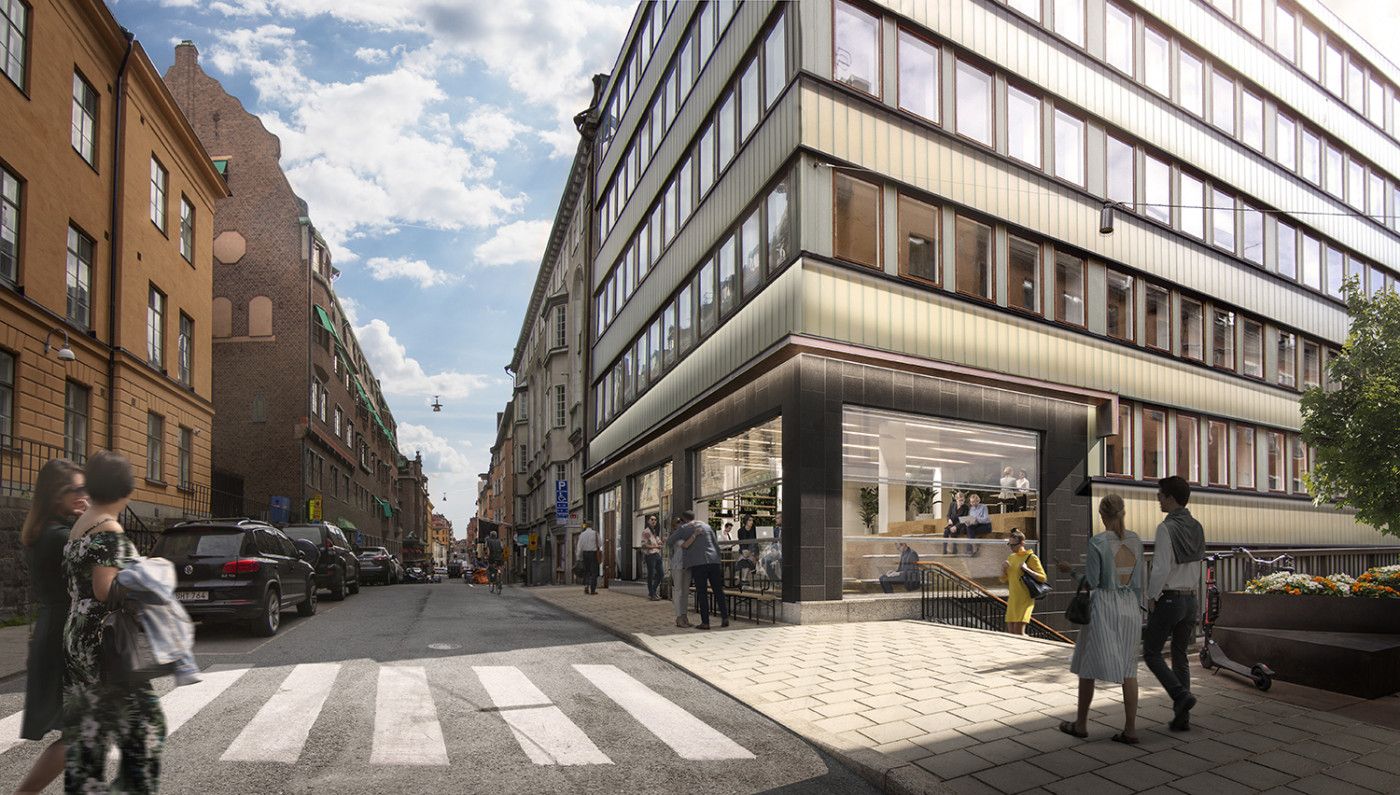 Fastigheten genomgår en totalrenovering för att bli en modern och effektiv kontorsfastighet.