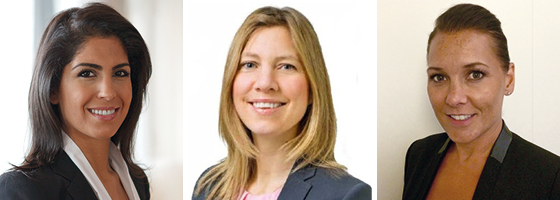 Här är finalisterna i Årets Unga Fastighetskvinna: Farnaz Mortazavi, Linda Eriksson och Cecilia Vestin.