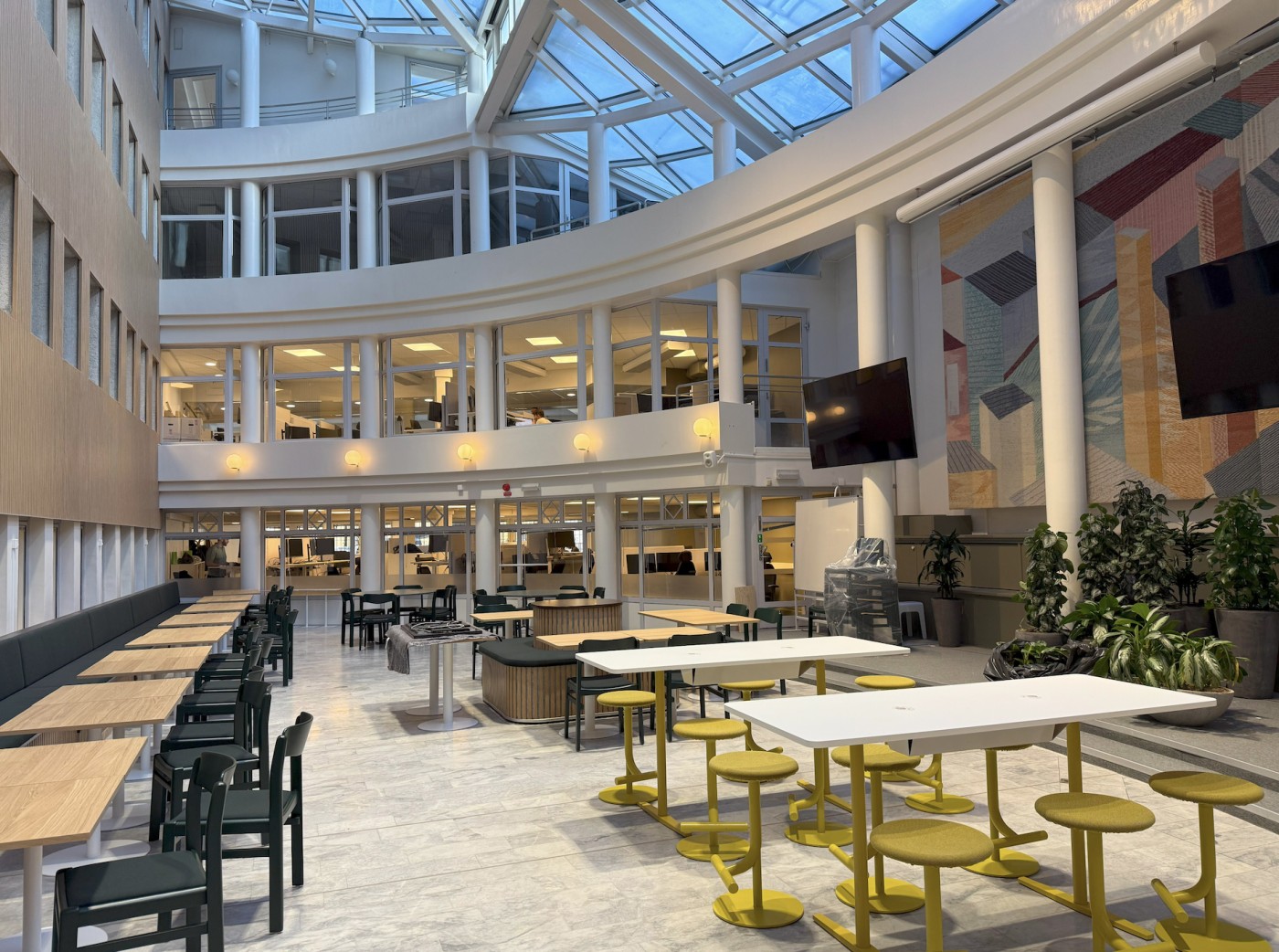 Norconsult har ett starkt fokus på hållbarhet och miljö, vilket har genomsyrat lokalanpassningen och inredningen. Bland annat har så gott som alla möbler återbrukats från det gamla kontoret.