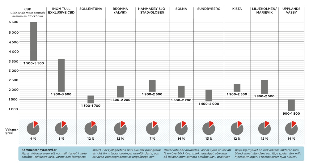 Hyresmarknaden i Stockholm förutspås ha en försiktigt positiv utveckling under 2014. Kommunikationer blir allt viktigare för utvecklingsområdenas attraktivitet och det är framförallt kollektivtrafikstillgänglighet som efterfrågas.