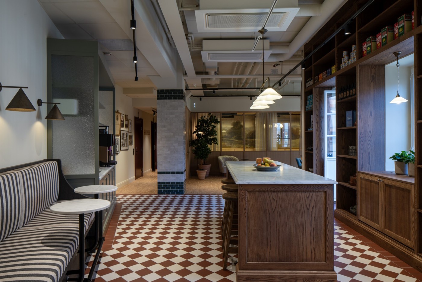 Val av material, möbler och detaljer återspeglar delvis företagets lantliga hotell Smådalarö Gård, Fågelbro Säteri och Krusenberg Herrgård – även dessa nydesignade av Koncept.