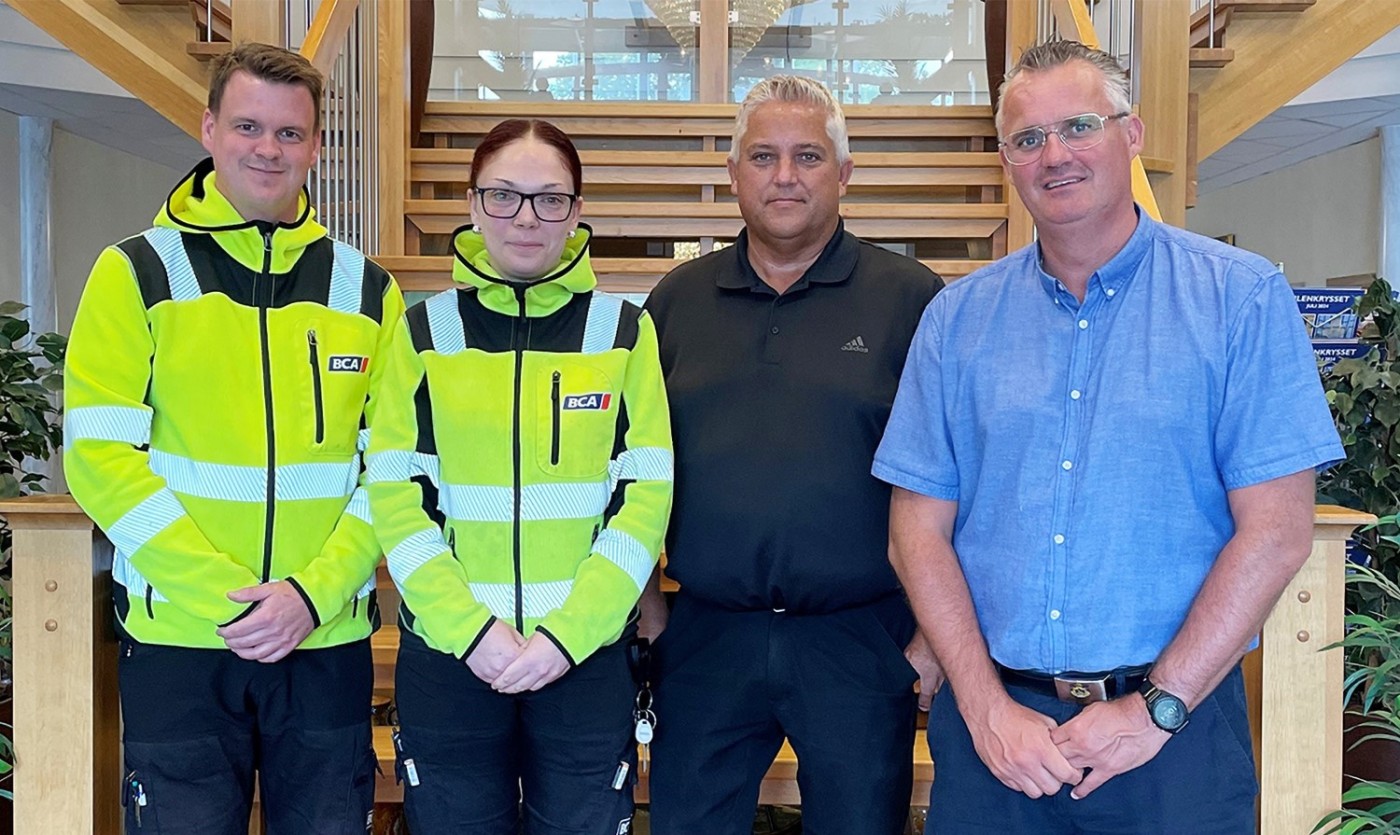Johan Åkerlund, Operativ chef BCA Sverige, Madelene Warnander, Operations Coordinator BCA, Robert Karlsson Förvaltningschef Kilenkrysset och Per Heikman Affärsutvecklare Kilenkrysset i samband med signeringen.