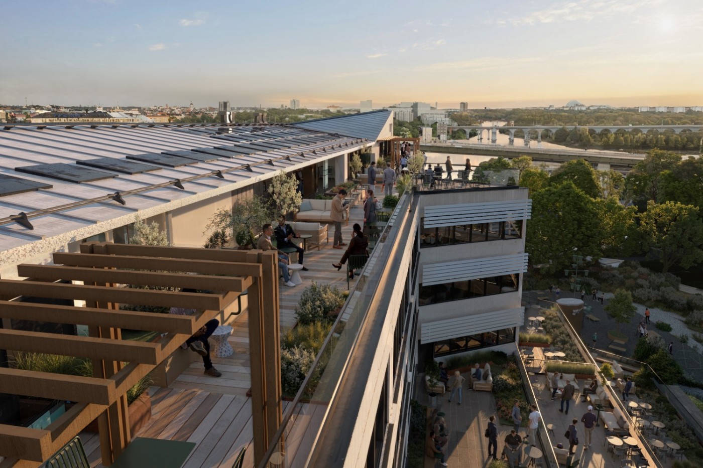 En central del i utvecklingen av fastigheten är den stora satsningen på husets terrasser. Nästan alla lokaler på Liljeholmsstranden 3 och 5 får egna terrasser, vilket skapar unika möjligheter att förlänga arbetsplatsen utomhus. Atrium Ljungberg ansvarar för design och förvaltning, med fokus på grönska och smarta lösningar som inspirerar och stärker både arbetsglädje och gemenskap.
