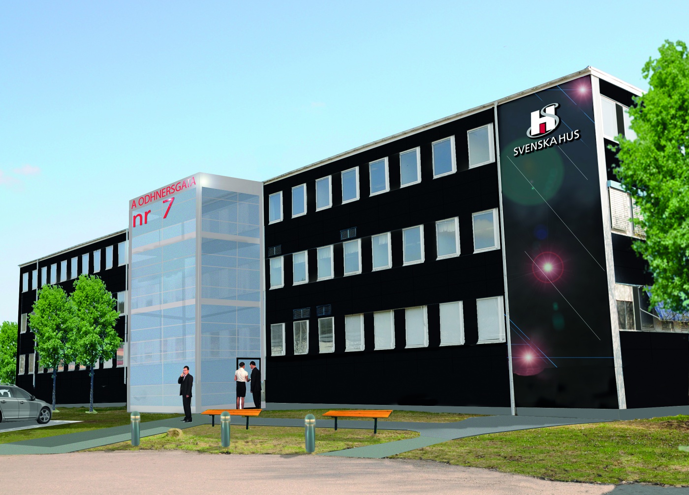Svenska Hus köpte fastigheten för ett och ett halvt år sedan och efter att ha färdigställt en nybyggd uthyrningsdepå till systerföretaget WHC, pågår nu ombyggnad av kontorshuset.