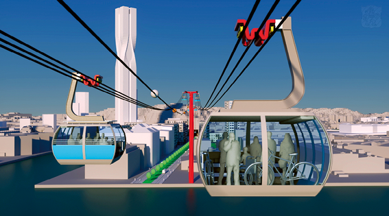 När det gäller storleken på gondolerna är tanken att 25–30 personer ska få plats stående i varje gondol, om det inte finns med exempelvis barnvagnar eller cyklar. Tidsmässigt ska det avgå en gondol var 45:e sekund.