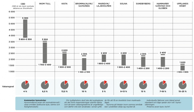 – Vakansgraden i CBD och innerstaden är historiskt sett på låga nivåer och dessa kommer att bestå det närmsta året, bra lägen i närförort kommer också ha en stabil vakansgrad. Fastigheter i områden som inte är lika attraktiva kommer få ökade vakanser. Hyresnivåerna på samtliga delmarknader är stabila under 2013 med en svag press uppåt i innerstan och CBD.
