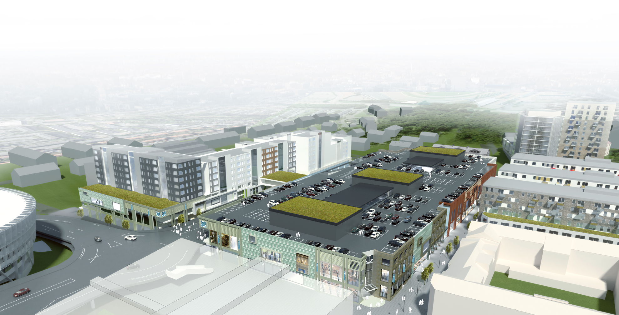 Nu består centrums utveckling av fem olika detaljplaner. NCC Property Development ansvarar för själva galleriadelen – 32 000 kvadratmeter och 70 butiker – och ett stort kontorshus (cirka 23 000 kvadratmeter) som planeras mellan Mölndals bro och rondellen söder om den.