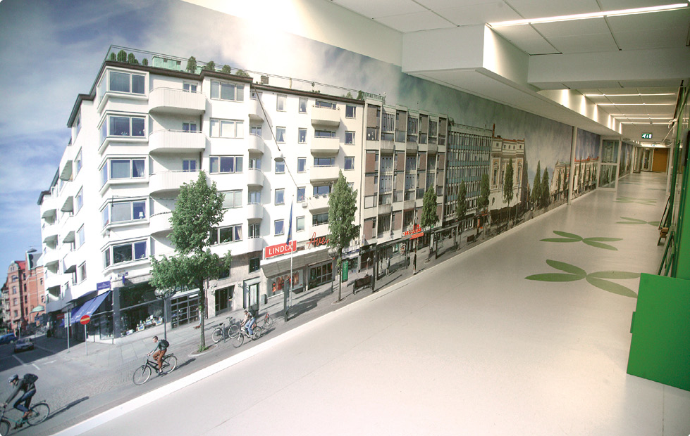 Vad gör man med över 160 meter långa, tråkiga korridorer för att de inte ska upplevas som 160 meter långa tråkiga korridorer? En svår frågeställning som Newsec Asset Management och Skatteverket löste på ett smart och originellt sätt; man lät tillverka Europas längsta fototapeter, med motiv från kända Göteborgsstråk.<br /> – Häromdagen pratade jag med en som hade hittat sig själv på väggen, säger Skatteverkets Börje Hermansson.