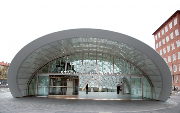 Stationen Triangeln har tilldelats Sveriges finaste arkitekturpris. Arkitekterna själva har ett kärt förhållande till sin skapelse.<br /> – Vi kallar den för toffeln, den ser ut som en morgontoffla som man bara kör in foten i, säger Lars Lindahl på Sweco.