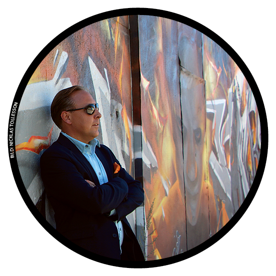 Många strängar på lyran. Jimmie Hall på Realist Fastighetsutveckling, är medarrangör av Ofientliga rummet i Passagen, och driver även galleriet Wallery som riktar in sig på graffiti.