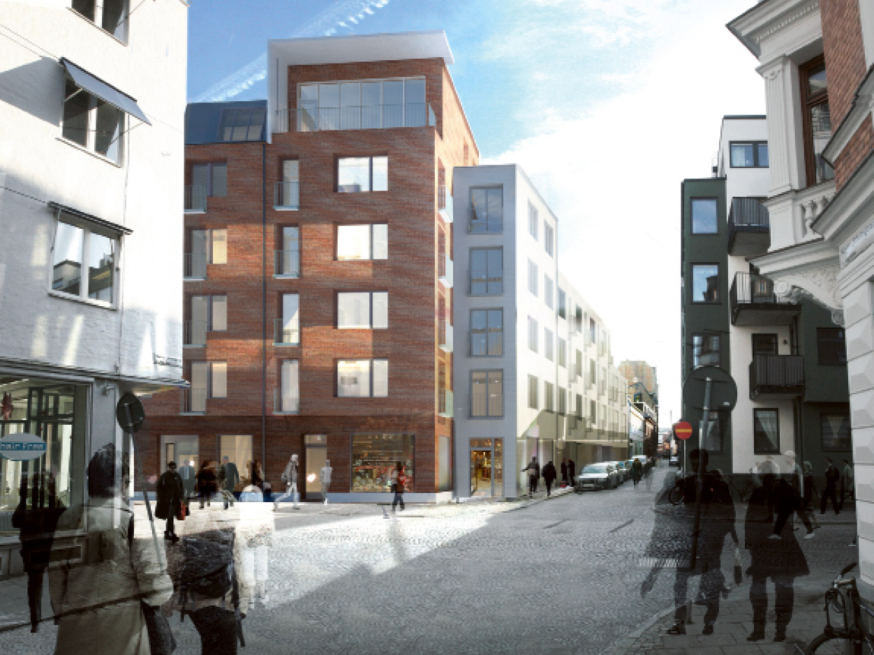 Tomma lokaler. De 35 hyreslägenheterna i kvarteret är redan uthyrda, men det finns fortfarande lediga lokaler för kommersiell verksamhet i bottenplanet. Bakom projektet står Stena Fastigheter.