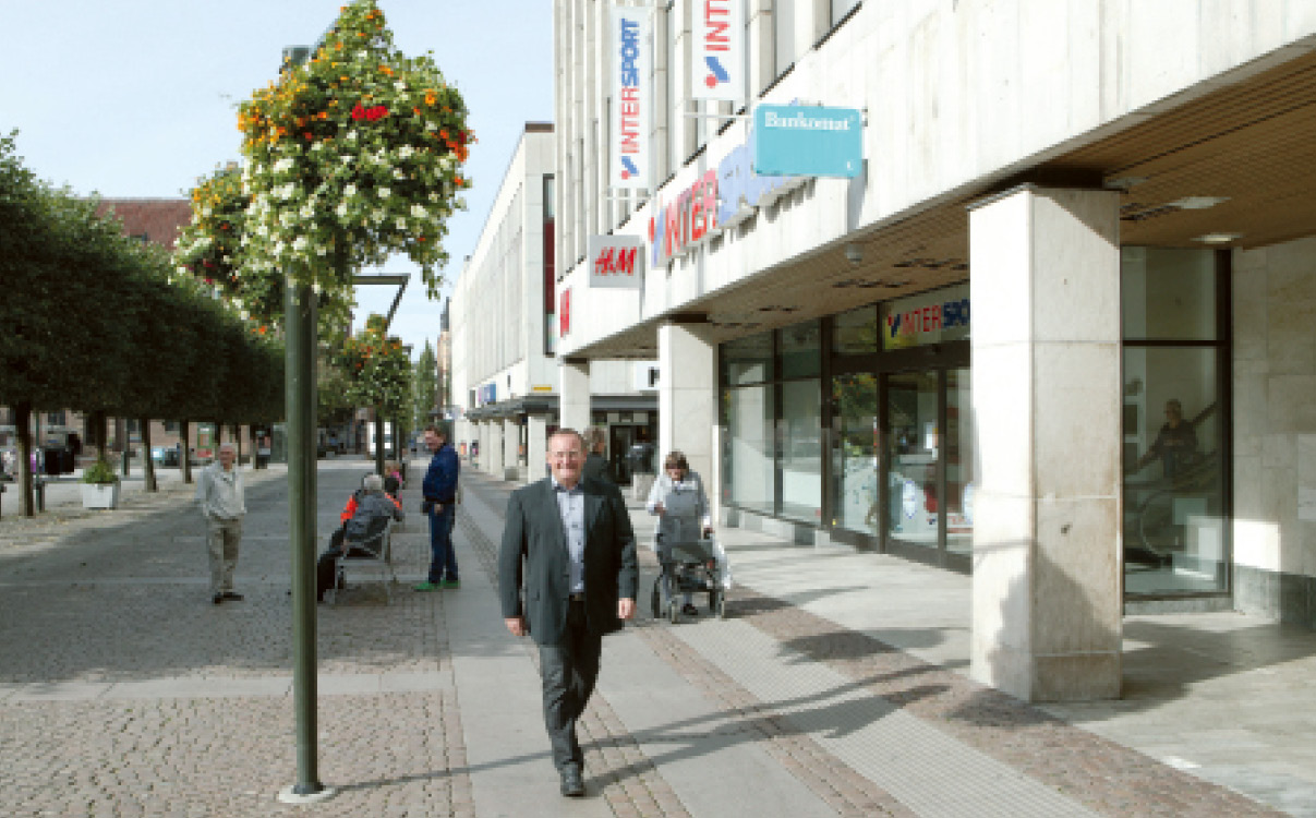 Tydligare stråk. Klusterbildningar är ett sätt att öka handelns omsättning och ett projekt kring detta genomförs just nu i Borås. "En butik kanske kan fördubbla sin omsättning om den pla- ceras på rätt ställe och får rätt grannar", säger CiB:s ordförande Erik Williamson, här vid stora torget, där framför allt de stora kedjorna finns.