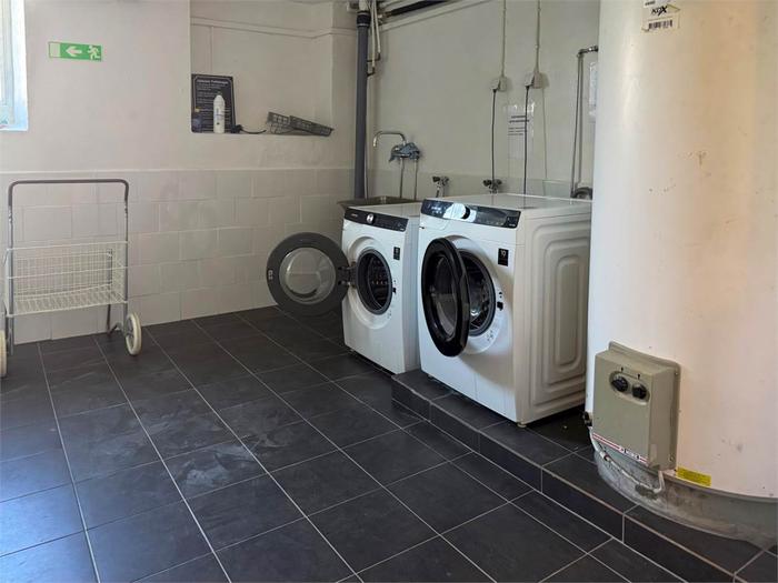 I byggnadens källare återfinns tvättstuga, lägenhetsförråd, undercentral, pannrum etc.