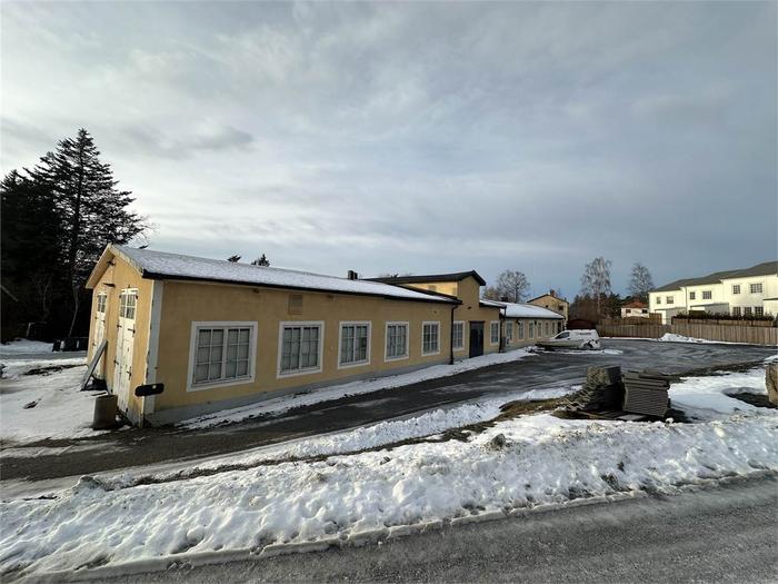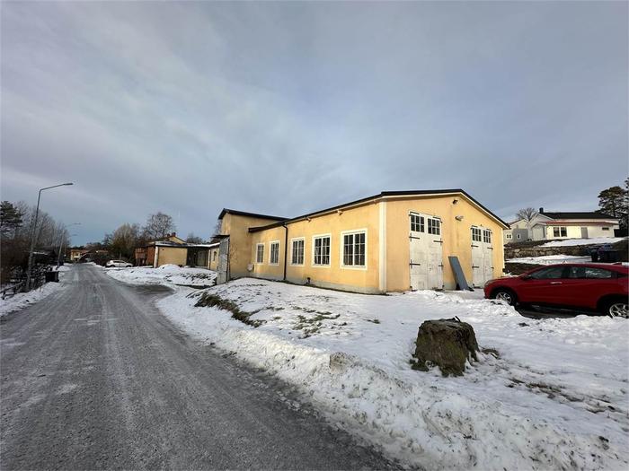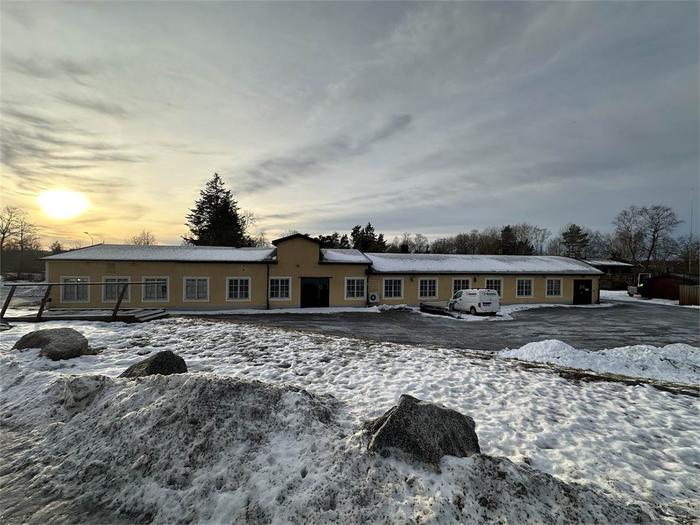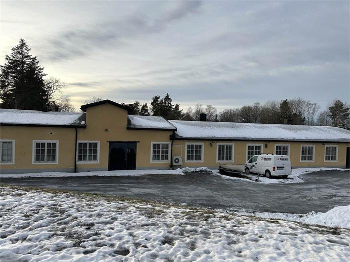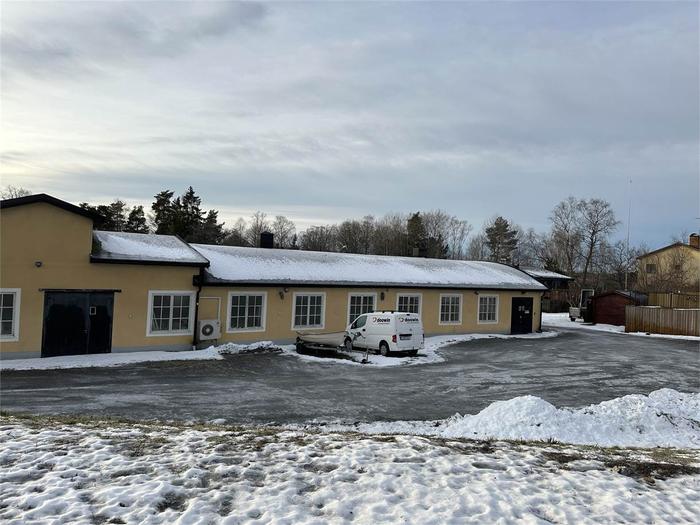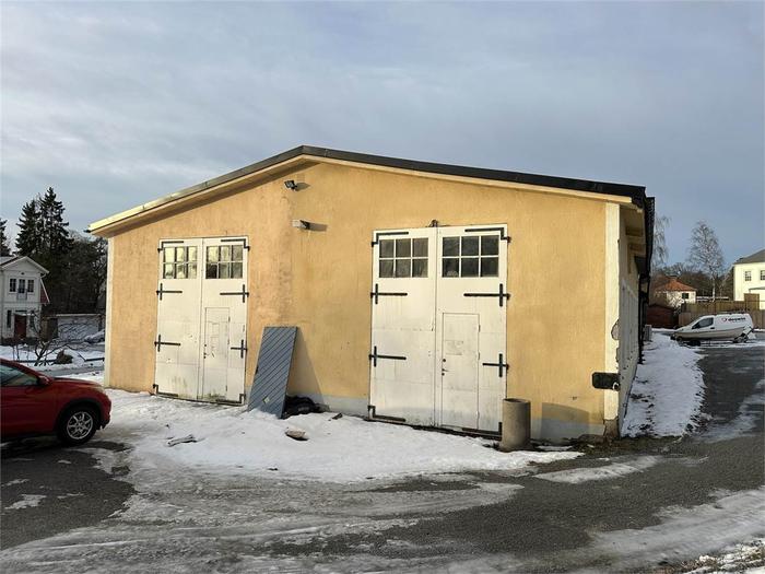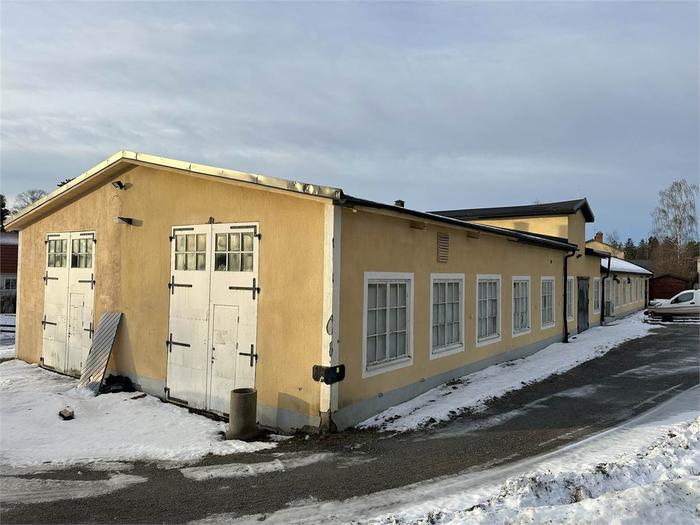 1-plansbyggnad med en kontorsdel med tre kontorsrum, personalrum med pentry, omklädningsrum och toaletter. Resterande delar av byggnaden inrymmer två större lager/verkstadshallar samt på den högra kortändan två mindre lagerytor (f.d. större garage) med stora portar. Den vänstra stora lagerhallen har en port från gården, den stora lagerhallen i mitten har port från både framsida och gård.