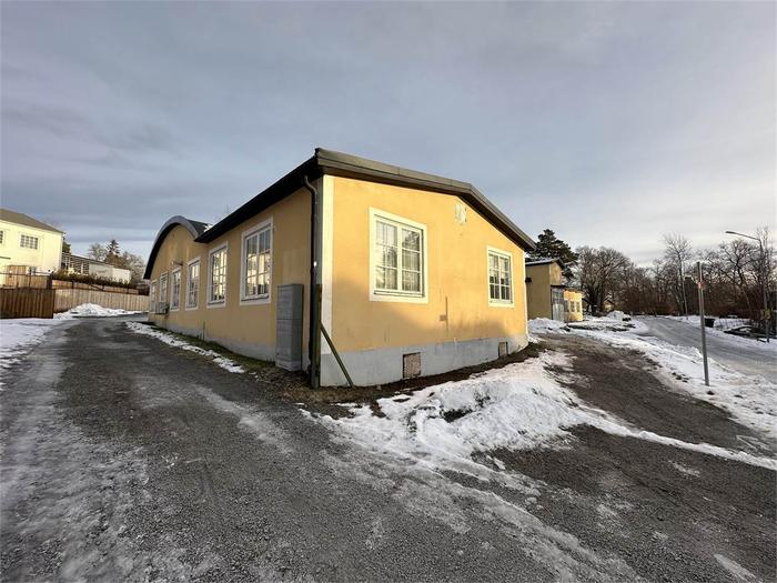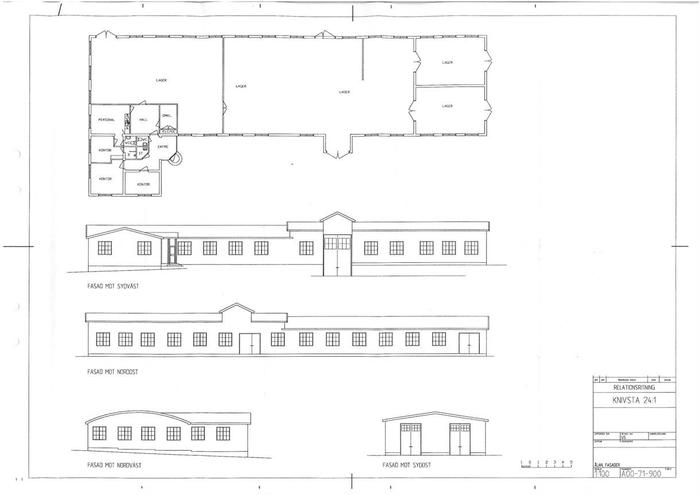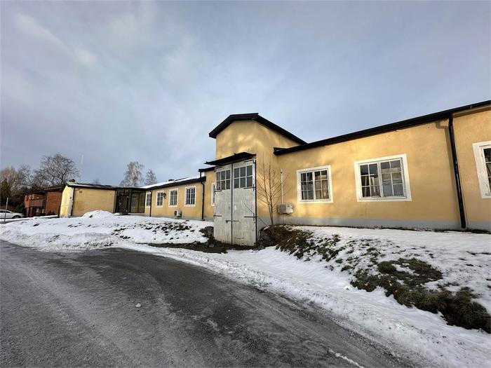 Beskrivning: Grund: betongplatta, Stomme: tegel, betong, lättbetong, stål och träbalkar. Fasad: puts, Tak: plåt, Fönster: 2-glas. Hängrännor: plåt