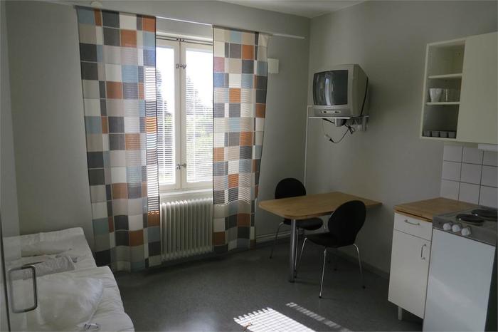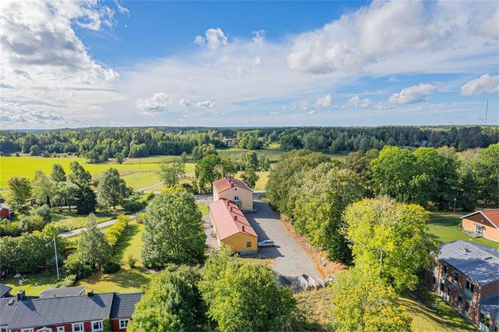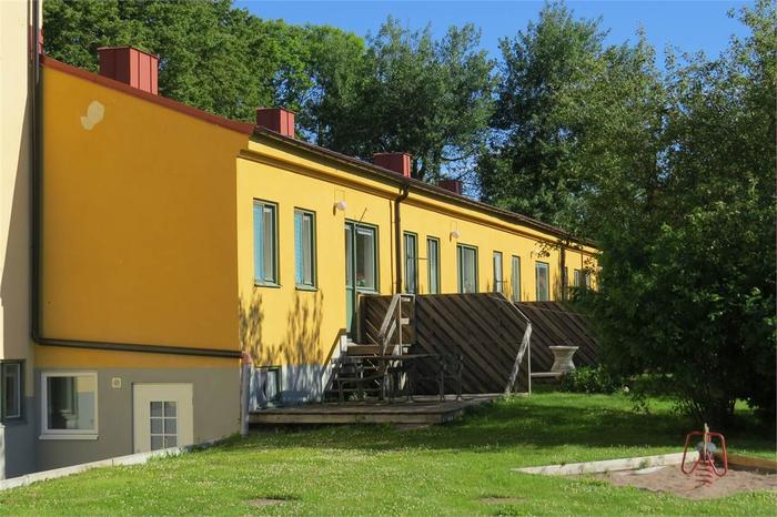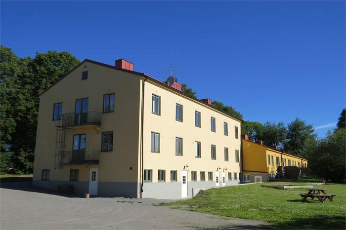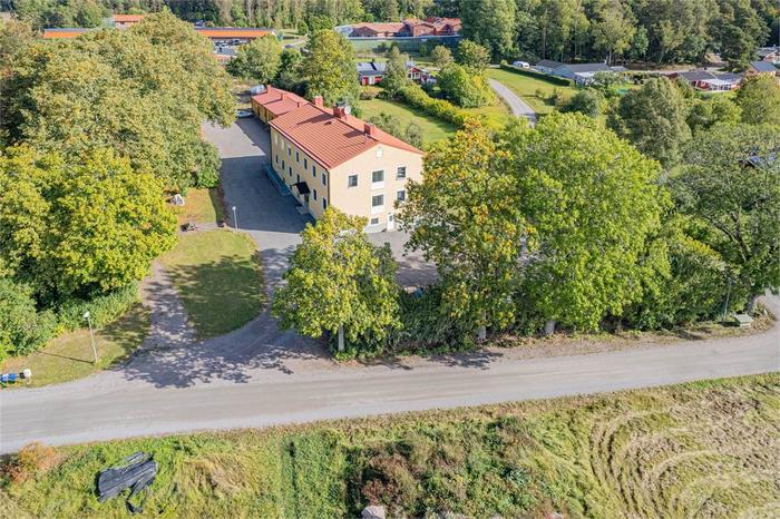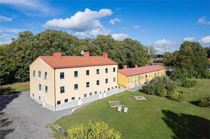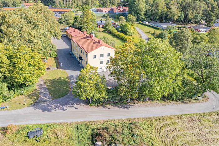 Bostadsfastighet i 2 plan och ett suterrängplan, källare samt en lågdel i 1 plan med delvis källare. 3-plansbyggnaden har ett trapphus med kalkstenstrappa och består av 26 stycken mindre lägenheter med trinettkök, micro och badrum med plastmatta och kakel. Av de 26 lägenheterna är 15 stycken om ca 18 kvm, 6 stycken om ca 15 kvm, 4 stycken om ca 19 kvm och 1 st om ca 31 kvm. I källaren finns tre av lägenheterna, tvättstuga, tork/strykrum, personalkontor, pannrum, förrådsytor m.m. Lågdelen består av 4 radhus med 2-4 rum och kök. Kök och badrum har plastmattor och kakel. Rummen har linoleummattor och målade väggar och tak. Alla 4 har separata entréer och egna uteplatser.